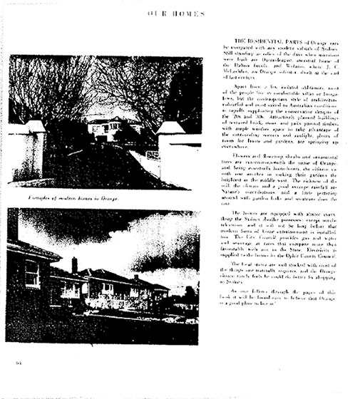 Orange 1860-1960 was one of a number of centennial publications brought on by the centenary of a change in colonial local government regulations in 1859. Above is a typical example of the promotion of a region’s housing in Ziegler’s publications.