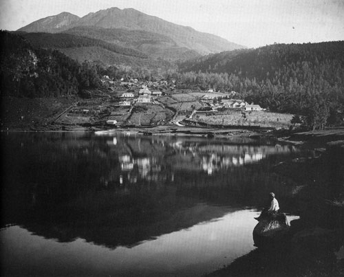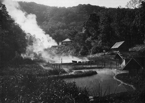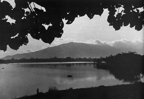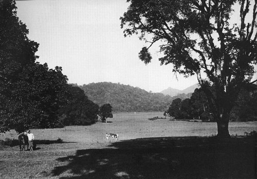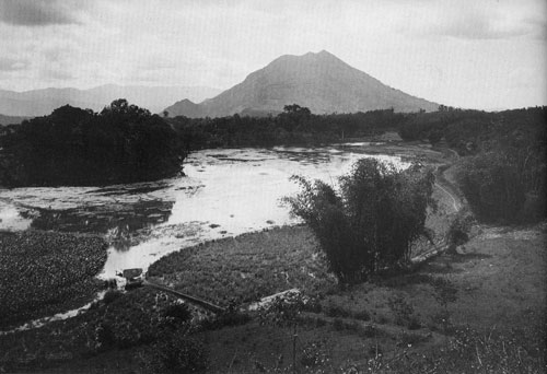 | #060: Between “Hacks Radium-Hotel” and volcanic Kamodjan-complex lies the so-called “English park” or the “English-plain”, so named because of its marked similarity to an Anglo-Saxon park. It is an extensive grassy surface with groups of trees here and there and a muddy lake: Danau (=lake) Pangkalan. |