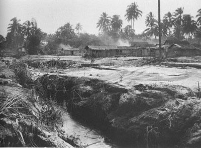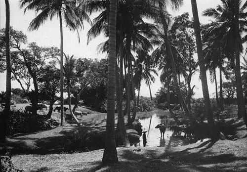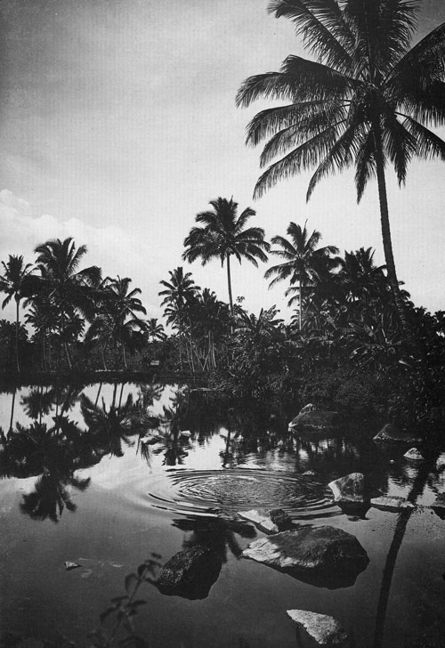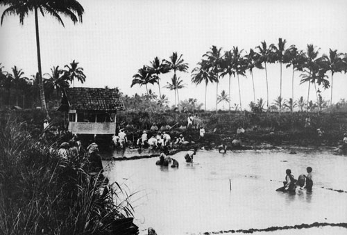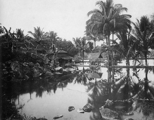 | #137: Fish ponds of Tjipanas. In this area countless coconut and banana trees also grow. |