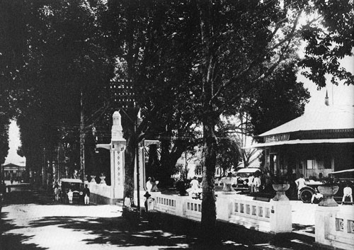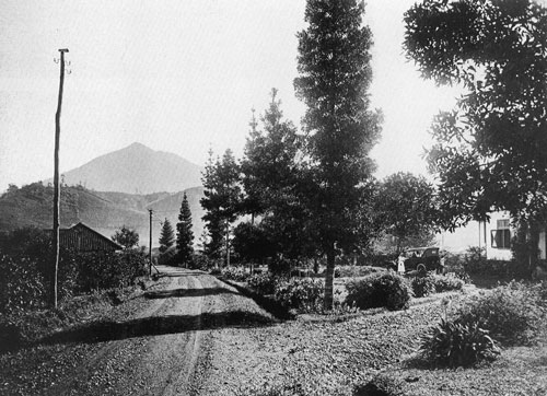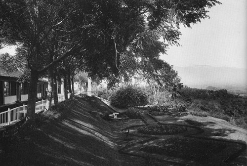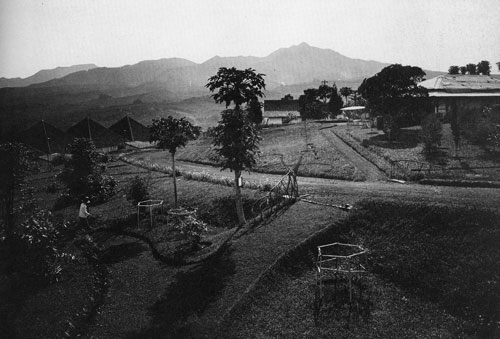 | #084: The entranceway to the sanatorium and a portion of the still young garden. In the distance the Kratjak complex can be seen, next to Galoenggoeng. |