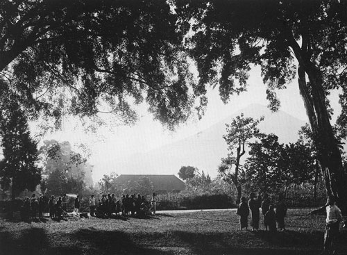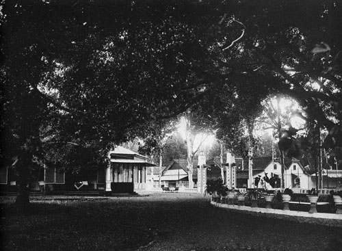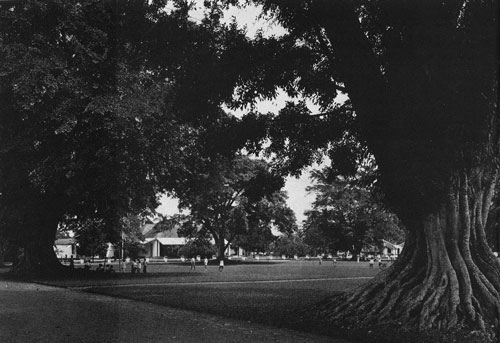 | #061: The aloen-aloen of Tjiamis. As always there are banyan trees here as well. The aloen-aloen is the field or public square – usually close to a regent’s residence – where public festivities and official ceremonies took place. |