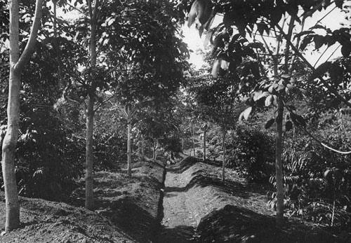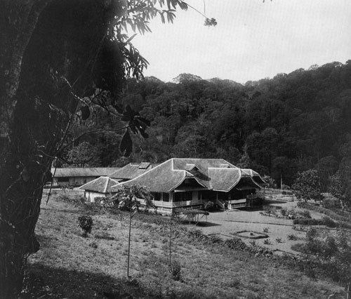 The owner of Djatinangor – the firm was obtained through a long lease – was also the first administrator: W A Baron Baud. In 1879 he was buried at a short distance from his house. This firm, a piece of my youth, lay between Bandoeng and Soemedang. |