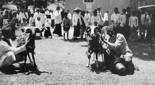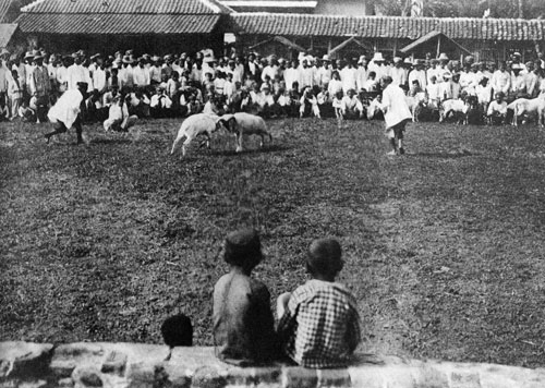 | #035: On festive occasions ram fights are held such as this “adoe domba” on the aloen-aloen in Garoet. |