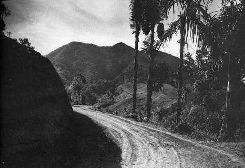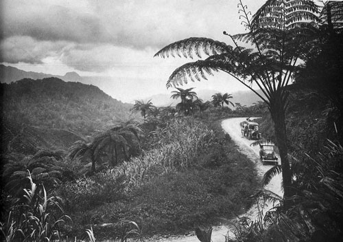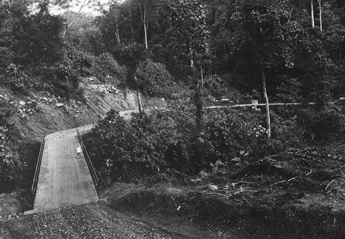 | #043: The road from Garoet to Pameungpeuk on the south coast. The road – opened in 1922 – winds its way over eighty kilometres in countless curves downhill through the whimsical jungle of Preanger. |