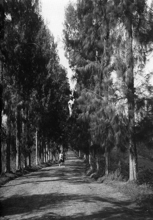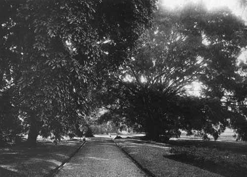 #152: The entrance way in the luxuriant garden of the Lodji, the house of the administrator of the firm Djatinangor where, among others, Oscar Weissenborn lived in 1930. The large banyan trees must have been a good eighty years old then.