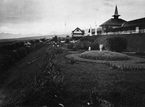 | #151: The garden of the “besaren” (administrator’s residence) at the cinchona enterprise in Garoet, where Thilly Weissenborn paid many a visit to her friends the Van der Veens. |