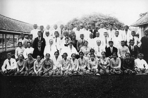 Standing, fifth from the left, Mr Groenendijk, from 1927 till 1936 principal of the Dutch Local School Boedi Prijaji. The Drissen family lived in the house on the right. |