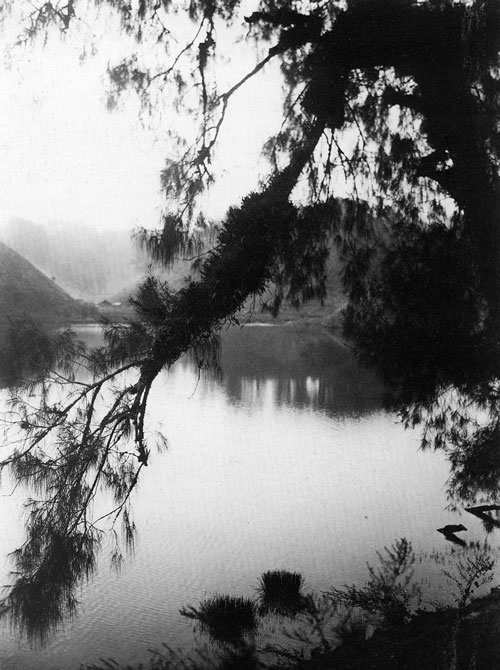 | #050: The mountain garden of Tjipodas, of which this pond with swans is a component, also belongs to the National Plant Gardens. The jungle on the slopes of Gedè and Pangrango – behind the lake – are natural monuments. |