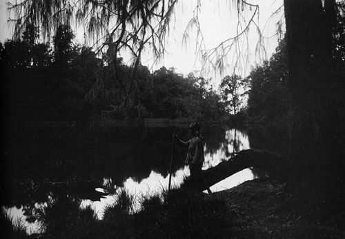 | #065: The aloen-aloen of Tjisoeroepan. By the contrasting light effect, the envelopment by the banyan trees and the peace that the human figures radiate, this is one of the most dynamic and also the stillest photos that I encountered. |