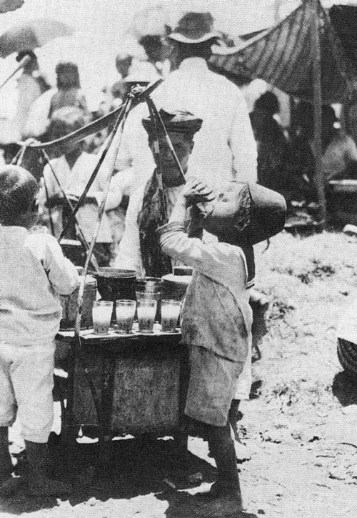 | #149: It is a holiday and this little boy is treating himself at the toekang tjendol, the tjendol seller, with a glass of this delicacy. |