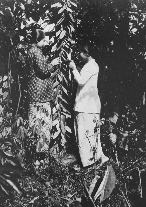 #157: Pluckers – a joy for the eye but (especially for the photo) dressed too well – of the Malabar enterprise, on the southern slope of the similarly-named volcano at Bandoeng.
