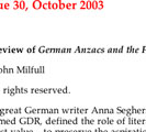 A Review of German Anzacs and the First World War, John F. Williams reviwed by John Milfull, Australian Humanities review, Issue 30, October 2003