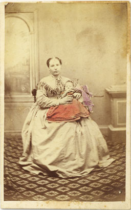 | Often found in local albums, were photographs taken elsewhere and sent out to the family, or those that were taken while visiting relatives which were then added to the family album on return. |